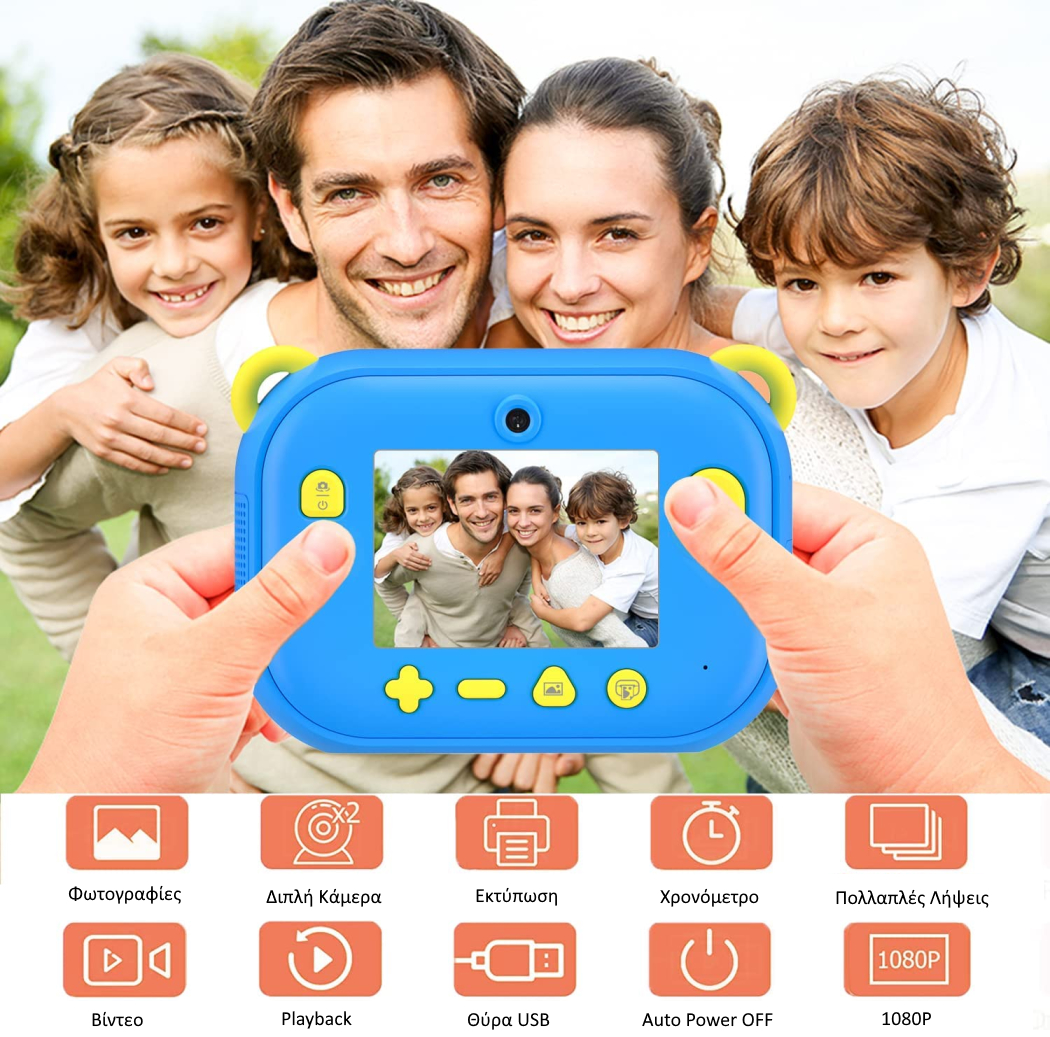 Η παιδική instant κάμερα δεινοσαυράκι της Skysonic είναι μια χαρούμενη, δημιουργική και εύχρηστη συσκευή για μικρούς φωτογράφους που αγαπούν να απαθανατίζουν τις στιγμές τους. Με έγχρωμη οθόνη LCD 2.4’’, θερμική εκτύπωση χωρίς μελάνι, δυνατότητα βίντεο 1080p και ανάλυση φωτογραφιών 12MP, αυτή η κάμερα προσφέρει στα παιδιά μια ολοκληρωμένη εμπειρία φωτογραφίας και παιχνιδιού.