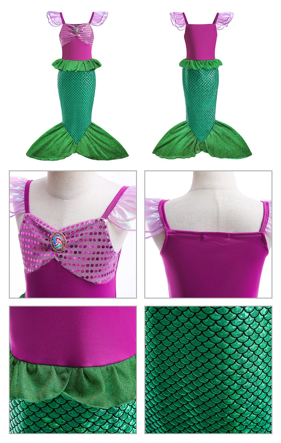 Η παιδική στολή Άριελ ξεχωρίζει χάρη στον ρομαντικό σχεδιασμό της και τα λαμπερά χρώματα που θυμίζουν το βυθό της θάλασσας. Το πάνω μέρος της στολής μιμείται το κοχύλι-τοπ της πριγκίπισσας Άριελ, ενώ η φούστα διαθέτει εφέ ουράς γοργόνας, δημιουργώντας μια πραγματικά εντυπωσιακή εμφάνιση.