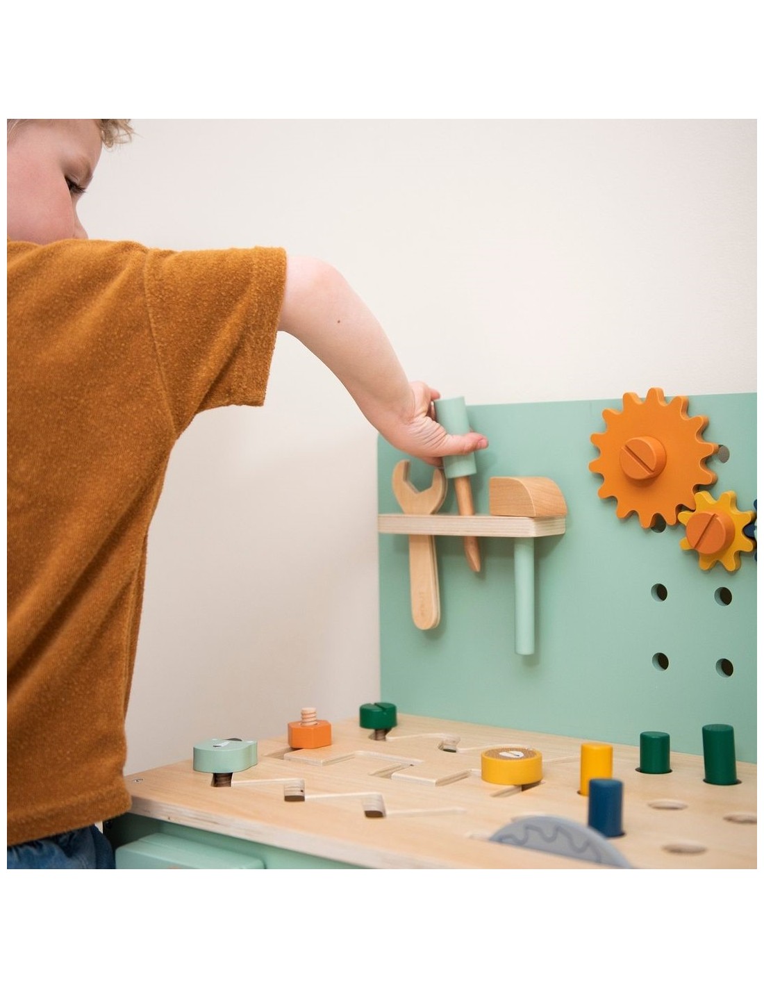 Η Trixie έχει σχεδιάσει τον πάγκο ώστε να προσφέρει άπειρες δυνατότητες συνδυασμών. Τα παιδιά μπορούν να συναρμολογήσουν γρανάζια, να βιδώσουν εξαρτήματα και να κατασκευάσουν φανταστικές μηχανές.
