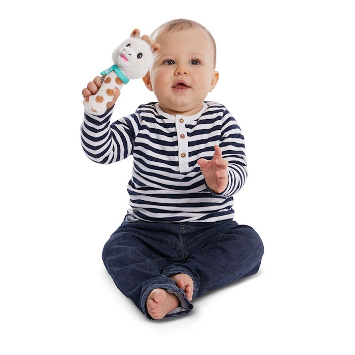 Η Sophie και η κουδουνίστρα Piu Piu βοηθούν το μωρό να ανακαλύψει τον κόσμο μέσα από τη χαρά του παιχνιδιού.