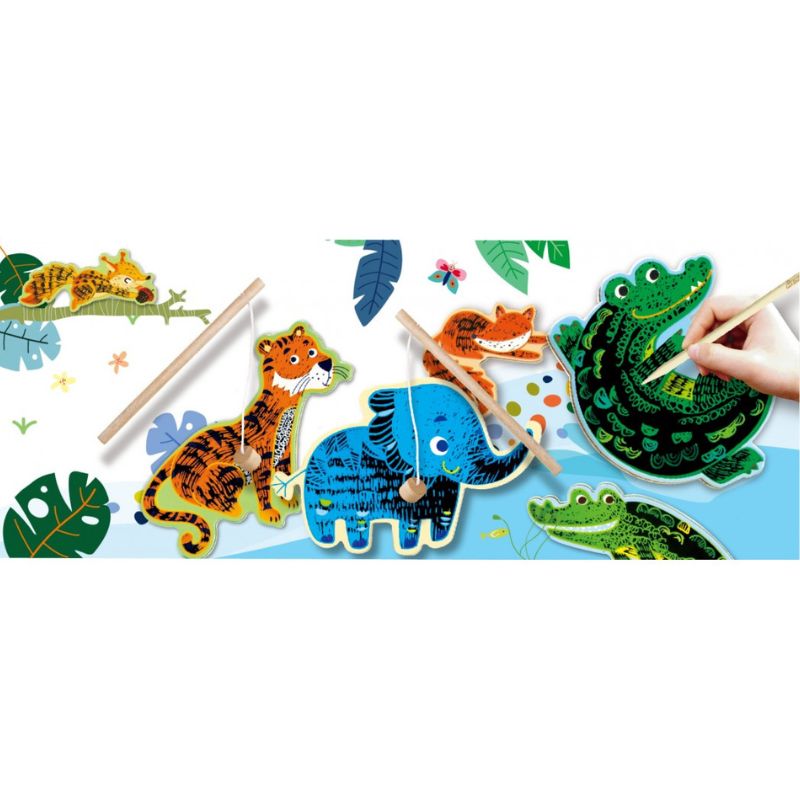 Η χειροτεχνία για παιδιά με ζωάκια από τη σειρά Avenir Scratch ’n’ Catch – Ζώα της Ζούγκλας είναι ένα συναρπαστικό δημιουργικό παιχνίδι που συνδυάζει τέχνη, φαντασία και εκπαίδευση. Τα παιδιά ανακαλύπτουν τις χαριτωμένες φιγούρες ζώων της ζούγκλας ξύνοντας απαλά τις ειδικές κάρτες, ενώ παράλληλα παίζουν με το μοναδικό μαγνητικό καλάμι “ψαρέματος”.