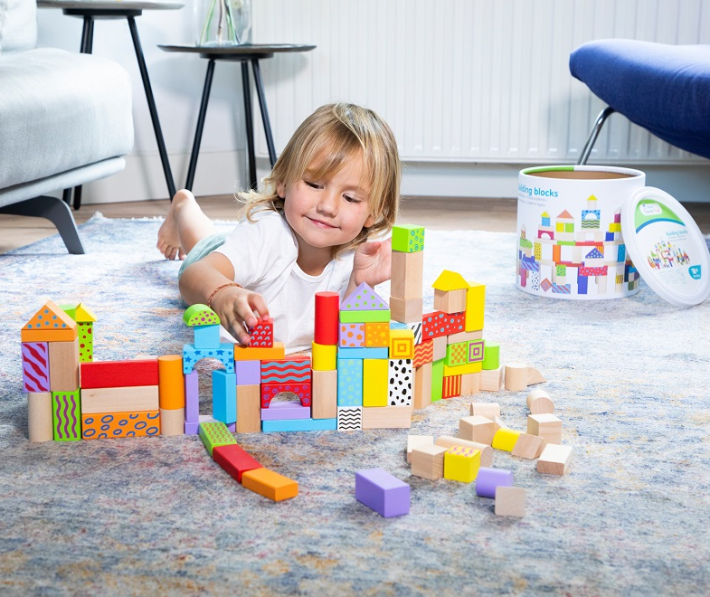 Τα ξύλινα τουβλάκια για παιδιά της New Classic Toys είναι ένα από τα πιο αγαπημένα και διαχρονικά παιχνίδια που ενθαρρύνουν τη φαντασία, τη συγκέντρωση και τη δημιουργικότητα. Με 100 πολύχρωμα τουβλάκια διαφορετικών σχημάτων και μεγεθών, τα παιδιά μπορούν να χτίσουν πύργους, σπίτια, κάστρα ή οτιδήποτε άλλο φανταστούν, καλλιεργώντας ταυτόχρονα σημαντικές κινητικές και γνωστικές δεξιότητες.